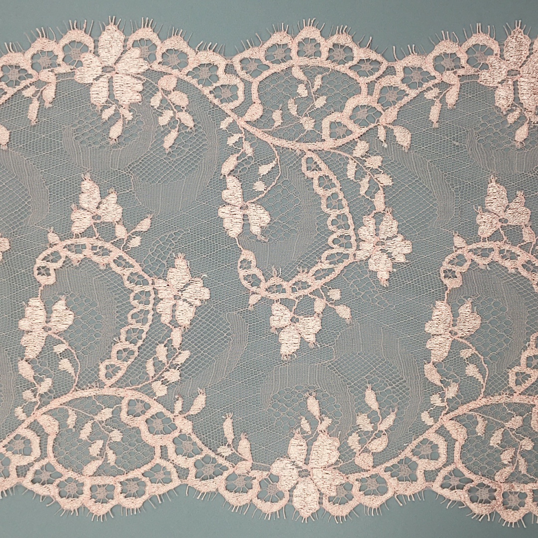 Optez pour ce sublime volant de dentelle rose à motif arabesque vendu au mètre. Véritable dentelle de Calais à la fois noble et délicate qui a été confectionnée dans le plus grand respect des traditions. Ce volant de dentelle joue la romance et veut savourer chaque seconde qui passe. Il sera s'adapter à toutes vos créations.