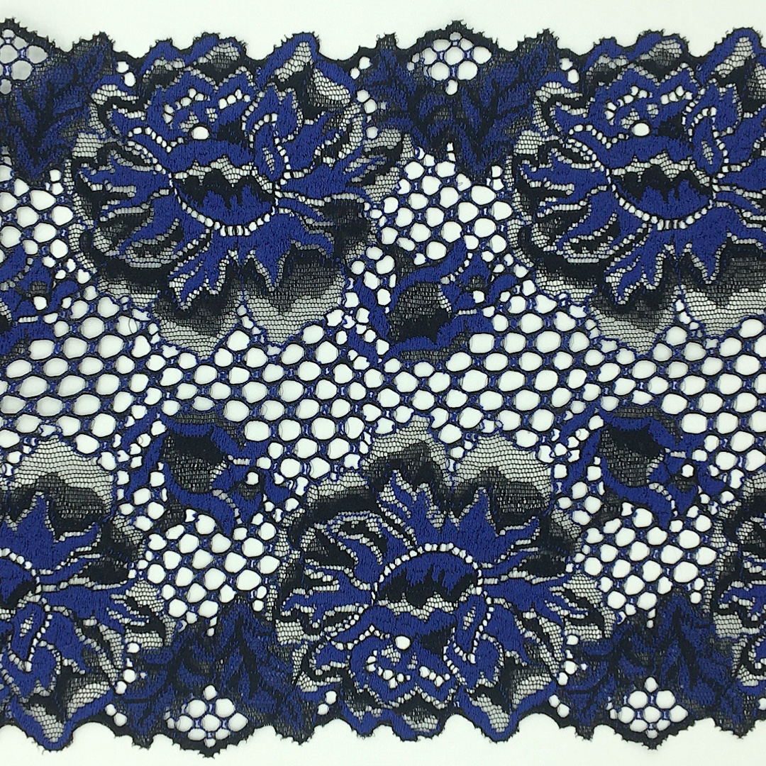 Dentelle de Calais bleu avec motif à fleur